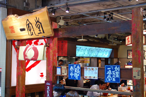 This is a branch of the famous Hakata ramen chain, featuring thin, slightly chewy noodles in a pork-based broth ("red" or "white"), with or without extra chashu. You can add your own freshly grated garlic.