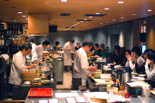 Occupying the second floor of a newish office building, Nakamura is a very tastefully appointed modern izakaya, with sophisticated lighting and sleek furnishings. A full crew of chefs work in the open kitchen area behind the massive central counter, which is the most entertaining place to sit. There's also a big shared table off to one side and several private dining rooms. The food is the sort of original seasonal cuisine that's popular in upscale dining bars, and there's a good sake list to match.