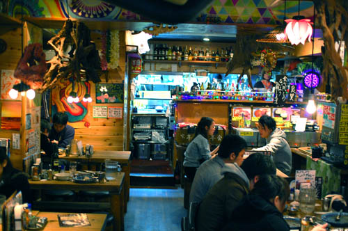 Moyan offers a huge variety of tasty Japanese-style curries and ethnic-style side dishes, along with inexpensive wines and cocktails. With its exotic-ethnic decor and Hawaiian background music, the atmosphere here is closer to a Bohemian cafe than a curry shop. The curry menu itself is rather exotic too - variations include ratatouille, avocado, pig's foot, and leek curries. The "Zenbu" (everything) curry (Y1550) is a good introduction - it contains beef, pork, chicken, shrimp and cheese in a sweetish roux, and it's quite filling.