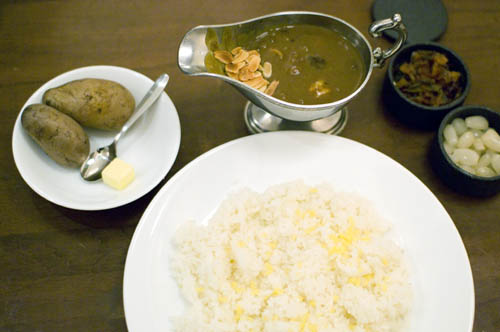 This long-running (since 1982) European-style Japanese curry shop remains popular with its loyal patrons, but the curries seem to lack some of the complexity and originality of its newer competitors. Curries include scallops and several other seafood variations along with the usual beef, pork and chicken, although you can't assemble your own combinations. Accompanying boiled potatoes are quite tasty, but some side dishes are overly ambitious, and wine is served in miniscule glasses. Curries are priced Y1100-1700.