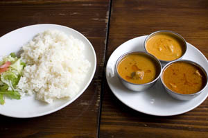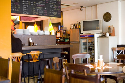 Oriental Table Ama serves good, reliable Nepalese and Indian curries along with crowd-pleasing pan-Asian side dishes (momo dumplings, Thai fishcakes, spicy lamb skewers, samosa, sate). The third-floor dining room, up a narrow staircase, looks out over the intersection in front of Yoyogi station. Dinner averages around Y2500, and the three-curry set lunch is Y850.
