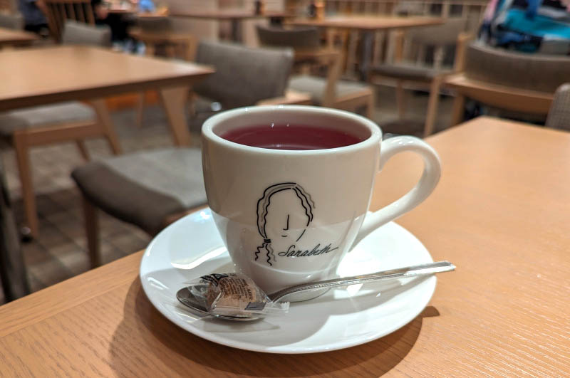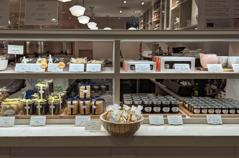 The dining room is a bright and cheerful cafe-style setup, with a lively daytime atmosphere. Sarabeth's is conveniently located just an escalator ride away from the busy South Gate of JR Shinjuku Station.