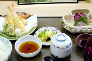 Fugu is the wintertime specialty here, with fugu-centric prix-fixe dinners starting at Y10,000, with sake or wine to drink. Soba lunches with tempura and/or sashimi are priced Y1260-3150.