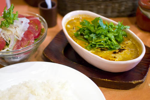 The original Japanese curries here incorporate umami-rich coconut milk, ripe tomatoes and cheese as well as fresh seasonal vegetables. Some popular options (from Y730) are oysters and spinach with baked cheese; ripe tomato, eggplant and chicken; and pork-cabbage, while extra toppings (mostly Y100) include corn, bamboo shoots, coriander, garlic shoots and tofu. Part of the Yamituki group of curry shops.