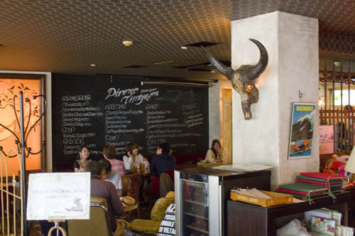 The menu is made up of inexpensive and hearty dishes like four-cheese gnocchi (Y1150), beef tongue stewed in red wine (Y1200), pizzas and pastas. House wine is Y1600 for a decanter and bottles range from Y2800-5500. The cafe is open until 4am (except Sunday), and from 8am on weekdays.
