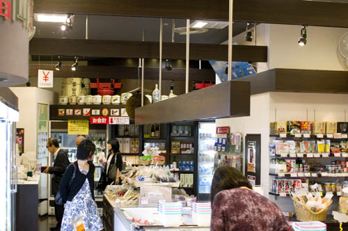 This small Toyama prefectural antenna shop sells mostly sake, in several dozen varieties. Other items include fish cakes and tulip bulbs.