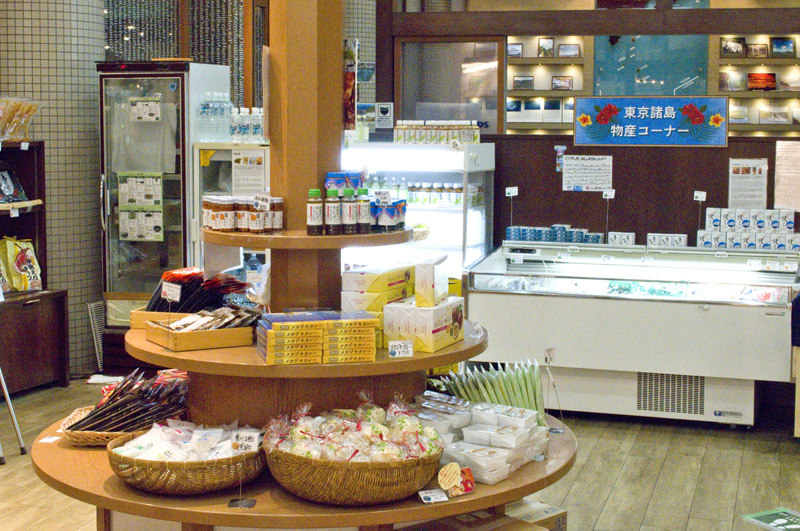 Located inside the ship terminal building, this small antenna shop and restaurant specializes in the food and drink of the group of tropical islands directly south of Tokyo, which are officially part of Tokyo Prefecture. The shop area sells several types of shochu and rum from the islands as well as artisanal salt, frozen fish, jam, and seaweed products.