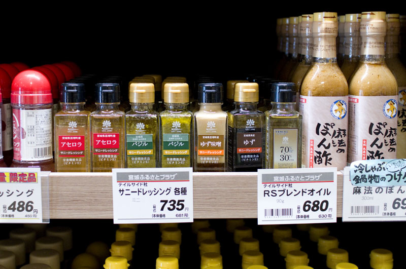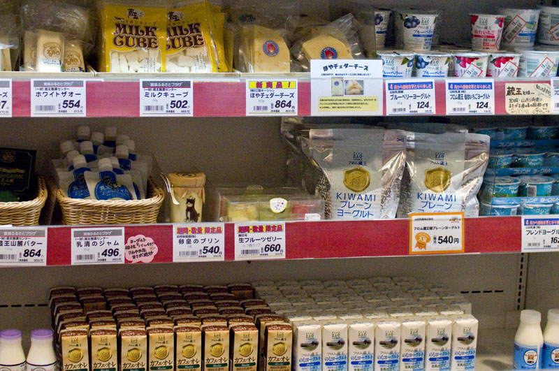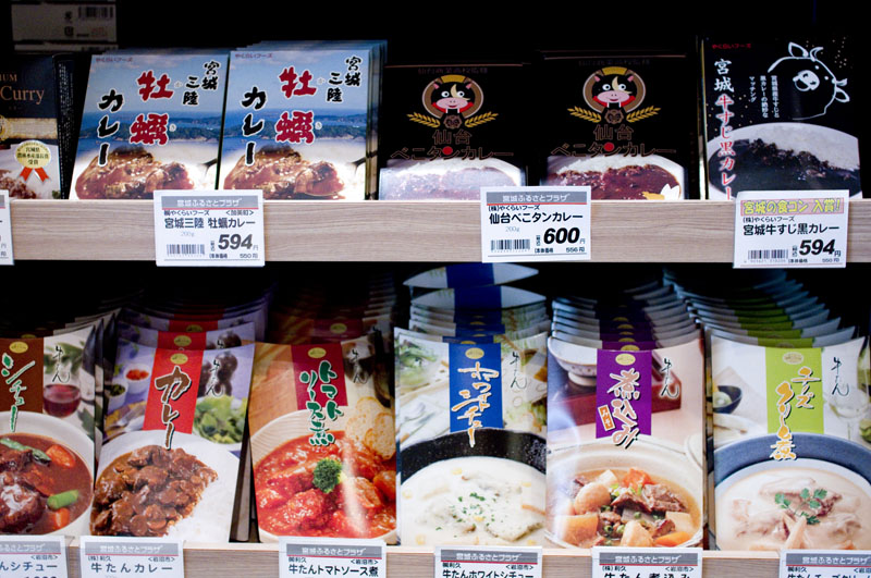A wide selection of Miyagi-ken sake - some fifty or sixty varieties - is one of the main attractions of this Miyagi-ken prefectural antenna shop. You'll also find Sendai beef and beef tongue products, fresh fish and seafood in season, cheese and dairy products, and a couple of rice varieties called Hitomebori and Sasanishiki. Soft ice cream can be purchased from a dedicated window in front of the shop.