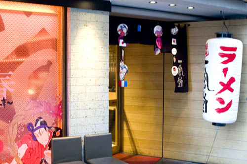 A branch of the famous Hakata ramen chain, featuring thin, slightly chewy noodles in a pork-based broth ("red" or "white"), with or without extra chashu. You can add your own freshly grated garlic.
