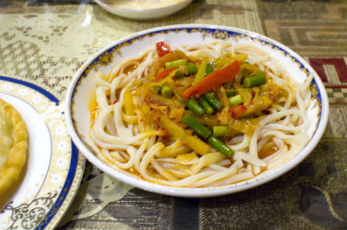 Mutton-focused Uyghur cuisine from Western China is the unusual specialty at this neighborhood noodle shop. Handmade leghmen noodles, long thick noodles topped with stir-fried meats and vegetables, are perhaps the most famous dish of the region, but the real standouts here are the beautifully spiced lamb and other kebabs.