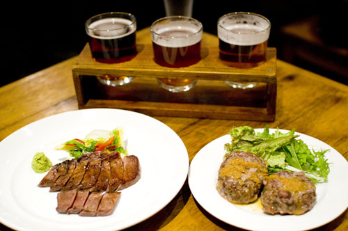 It may look like just another Tokyo craft-beer bar, but Vector serves up an appealing menu of beef-tongue dishes and other solid izakaya fare, making it a popular dining destination as well as a bar. The charcoal-grilled sumibiyaki tongue (Y980) in particular is a crowd favorite - slightly chewy and cut a bit thinner than average, with a nice charcoal-infused flavor that's complemented by the accompanying wasabi and crunchy pickled hakusai.