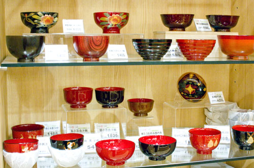 Near the tasting counter is a well-stocked sake retail area, with more than 100 sake by the bottle, many of them otherwise hard to find in Tokyo. There's also a good assortment of food - fresh produce; fruit jams and preserves; many types of miso and soy sauce; soba, udon and rice noodles; twelve kinds of packaged curry; kamaboko fish cakes; pickles and ice cream. The crafts area of the shop handles tableware, glassware, wooden dolls and other decorative items.