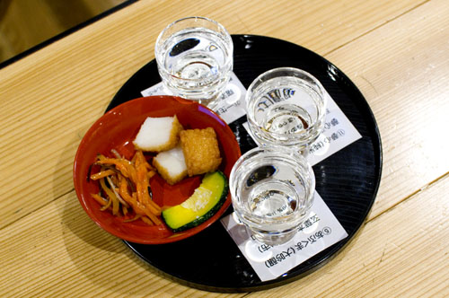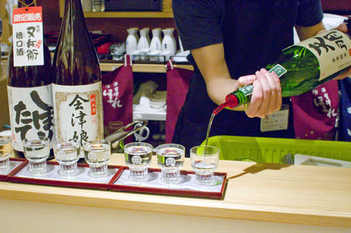 Fukushima Prefecture is justifiably famous for their excellent sake, and you can try several of them in one sitting in the sake-tasting corner of this antenna shop. Three-part tasting flights are Y1000, and there are around 22 different sake to choose from. (There are tasting notes in English, or you can ask the staff for advice if you need help choosing.)