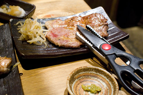 We were intrigued by the menu categories at this after-work izakaya - charcoal-grilled meats, charcoal-grilled small fish and charcoal-grilled big fish - all of them prepared over top-grade bincho charcoal. Heirloom breeds of pork, chicken and premium wagyu beef make up the bulk of the meat menu, and the ones we sampled were tender in texture and sufficiently fatty to bring out their full flavor after grilling.