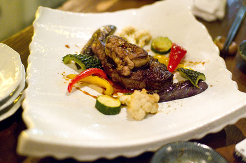 The food here is decent, but it definitely plays a supporting role for the sake. The steak with foie gras, however, is quite good, and the sashimi is generally reliable. There's an amusing half-height door that you have to climb through to enter; if it's not as amusing when it's time to leave you can ask them nicely to open it all the way. Budget around Y4000-6500 for ample food and drink.