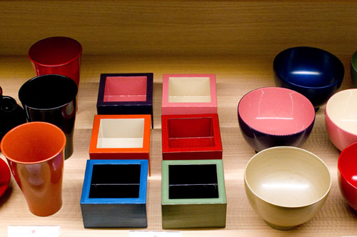 Fresh and frozen ingredients, candies and other prepared foods are sold on the main floor, with a small cafe area up on the second floor. Upstairs you'll also find a huge variety of local Ishikawa-ken crafts - colorful Kutani-yaki pottery, beautiful lacquerware, wood and paper crafts, and items covered in gold leaf, a major local industry.