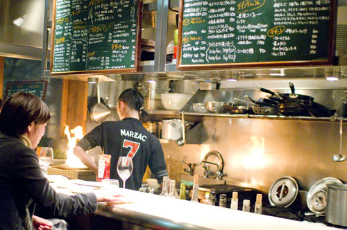 Like the original Marzac in Aoyama, this stylish two-story cafe near the Meguro River serves up nicely prepared grilled-meat dishes and reasonably priced wines by the glass or bottle. The open kitchen on the ground floor helps establish a warm, friendly atmosphere. Budget around Y3000 for food and drink.