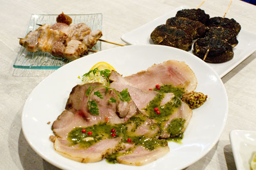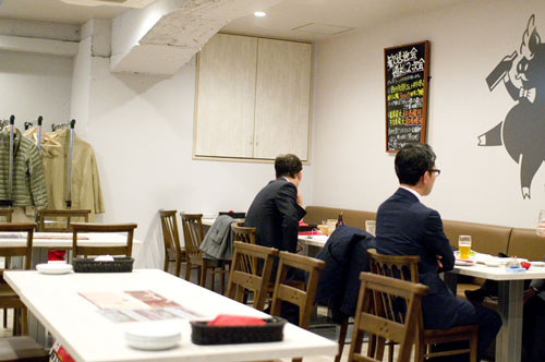 A brightly lit, spacious basement, Tokyo Porks attracts a lively after-work crowd with its cheap drinks (beers are Y289) and simple but competently prepared izakaya-style grilled pork dishes. Organ-meat fans can choose liver, heart and other cuts at Y120 per skewer, while the large-size spareribs are a bargain at Y380.
