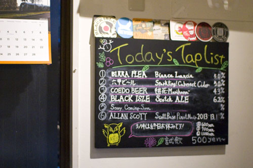 On the retail side Night Owl carries a limited selection of obscure beers that are hard to find elsewhere - Moa from New Zealand and Mountain Goat from Australia among them - mostly priced at over Y1,000 for a small bottle. You can also find artisanal bitters, various absinthes, expensive chocolates and other gourmet foods. Note that in spite of the name, Night Owl closes at 9pm (8pm on weekends).