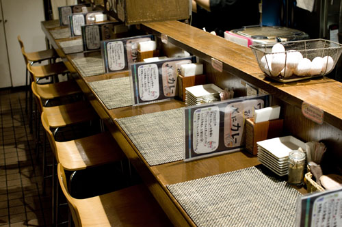 The restaurant has a simple counter-style setup, with nicer-than-average seats and place settings. Curries are priced from Y930 (Y730 for a two-thirds portion size), and wines start at Y590 per glass or Y390 for a mini-glass.