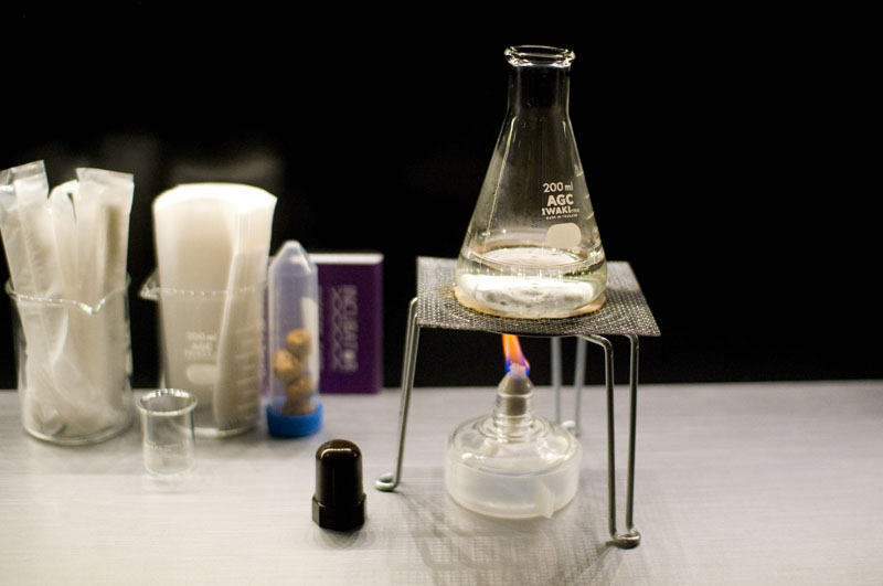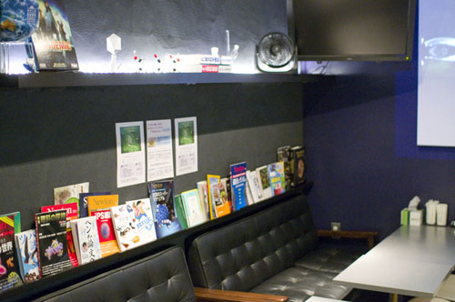 Incubator's Y500 cover charge includes a snack (we were served several figs in a big test tube) and optional use of a lab coat. After that drinks are priced fairly normally - for example wine by the glass starts at Y750 and a 300ml Pyrex beaker of beer is Y900. The food menu features items like oysters, tofu and tomato salad with avocado oil, and cheese fondue heated over a lamp.