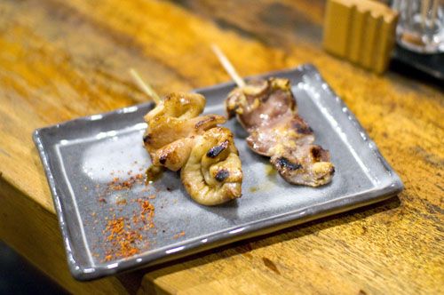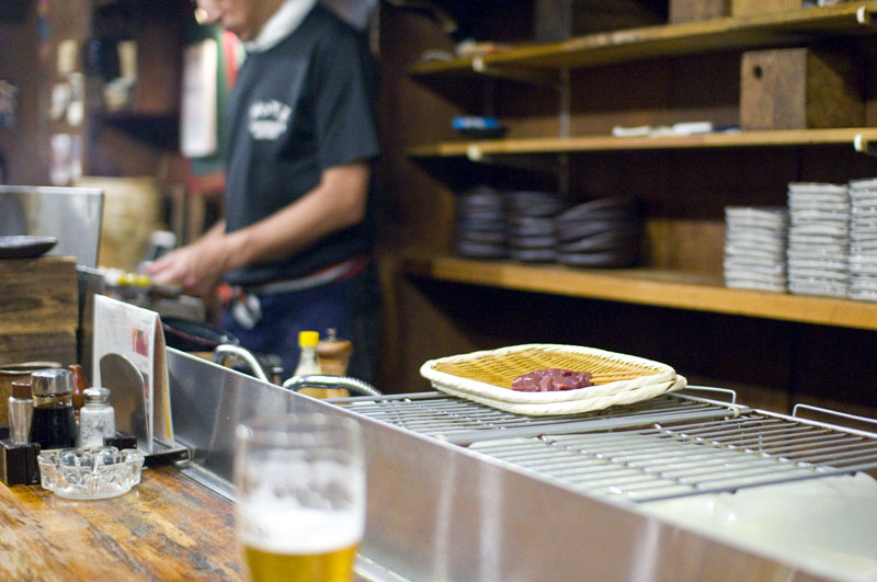 The specialties of the house at Sasamoto are grilled skewers of pork and beef, with an emphasis on organ meats. They're also known for their kushi-nikomi - pork giblets on skewers in a rich miso-based stew. You can order a la carte (there are around fifteen different grilled skewers), or take the easy approach with one of the set menus that feature a variety of grilled items plus one small portion of stew.