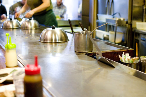 Hiroshima-style okonomiyaki is the specialty at this friendly neighborhood spot, along with a good assortment of vegetables from the teppanyaki grill. Choose from seven or eight okonomiyaki variations, all made with a base of pork, eggs, cabbage and other vegetables, plus your choice of ramen (aka "soba") or udon noodles. (In case you're extra-hungry, we were told that the ramen noodles create a more voluminous final product.)