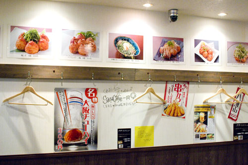 Also featured on the menu are "Osaka-style drinks," which in this case means frozen plum liquor and various highball cocktails as well as red and white wines. Menus are bilingual.