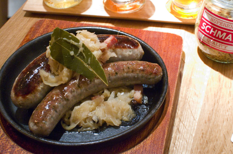 The extensive food menu offers pizzas, pastas and risotti, a tempting range of sausages (lamb, herb, currywurst), meat dishes (schnitzel, charcuterie platter), and even some German vegetable dishes. The dining room is very casual, with most seating at high tables with stools, although there are a few proper dining tables in back. A mix of contemporary German pop music plays in the background.