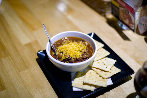 Deep-dish Chicago-style pizzas are featured on the food menu, although the menu warns that they may take up to an hour to arrive. The beef chili (Y900 for a small portion) comes out much more quickly, and goes well with just about any of the beers.