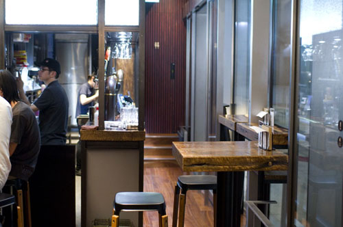 The setting - on the second floor of Tokyo Station's Granroof complex - is pleasantly urban, although parts of the cozy interior can feel a bit cramped. (Also the automatic door can be overactive, which is unfortunate in bad weather.) There's some outdoor standing room if you want some fresh air. Look for the upward-bound escalators on the east side of the station, just to the south of Daimaru department store.