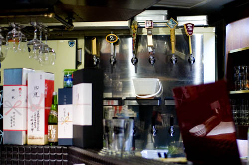 The dining area is fairly utilitarian, with several cafe-style tables and a long counter. (The space used to be occupied by beer bar Ushitora One, and the new bar is run by a former staff member with little change of decor.) Most beers are priced at Y800-900 for a regular glass (270ml), and Y1200-1300 for a US pint. Standing beer bar Ushitora Two is located just two doors down, in the same building, so you can easily hop back and forth between the two places.