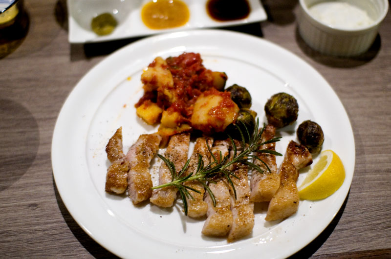 In addition to the charms of its unusual location, Bowling Cafe is quite spacious, provides free wifi, and is very close to Shibuya Station, so as well as hungry bowlers it also attracts an afternoon crowd of people working on their laptops. The food menu is more ambitious than you might expect, and our grilled pork plate (Y1200) featured excellent heirloom-breed pork from Kagoshima as well as roast Brussels sprouts and other seasonal vegetables.