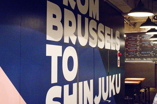 The bar is spread out over two levels, with restaurant-style table seating upstairs and more of a bar setup, with high stools, on the ground floor. The shop is managed by the long-running Tokyo-based Brussels chain, and occupies the space of the former Hoegaarden Cafe. Budget around Y4000-6000 per person for dinner-size portions of food and drink.