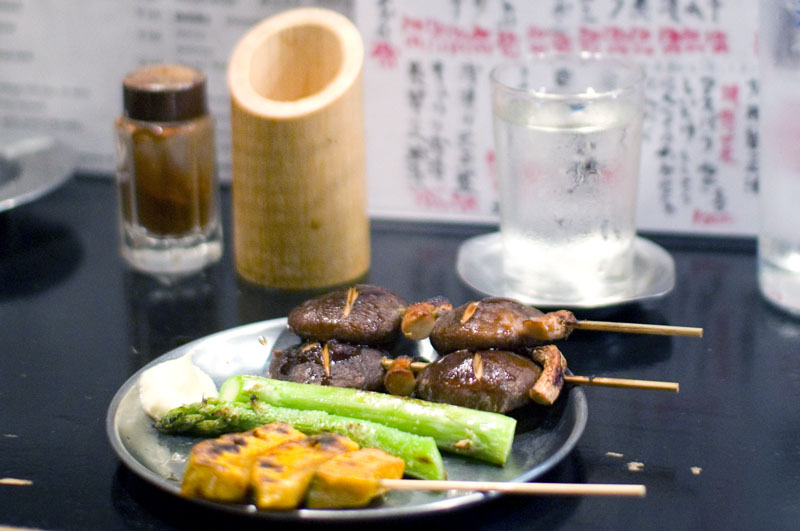 Yakiton (grilled pork on skewers) is the specialty at this budget-friendly local izakaya, along with grilled seasonal vegetables, grilled chicken and drink-friendly side dishes. At Y100 per skewer it's hard to beat Shimonya's cost performance, and sake and other drinks are also quite reasonable. The downstairs fills up quickly during peak times but there's additional seating upstairs to handle the crowds.