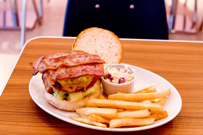 Classic American-style burgers are served here along with milkshakes in many flavors. Burgers are meaty and well seasoned, served with good quality bacon and cheese as options. Regular burgers come without distracting sauces, but with fresh-tasting tomatoes and lettuce dressed with mayonnaise that add a nice balance to the meat.
