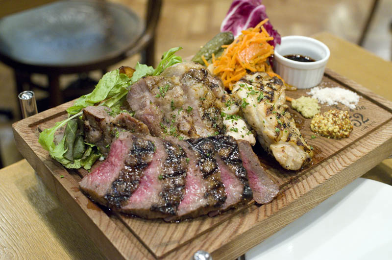If you want to keep it super-casual, there's a standing bar on one side that features Y500 glasses of wine. Weekday lunches are served until 3pm, and these include meaty one-plate lunches and a limited-edition foie gras and hamburg steak special.