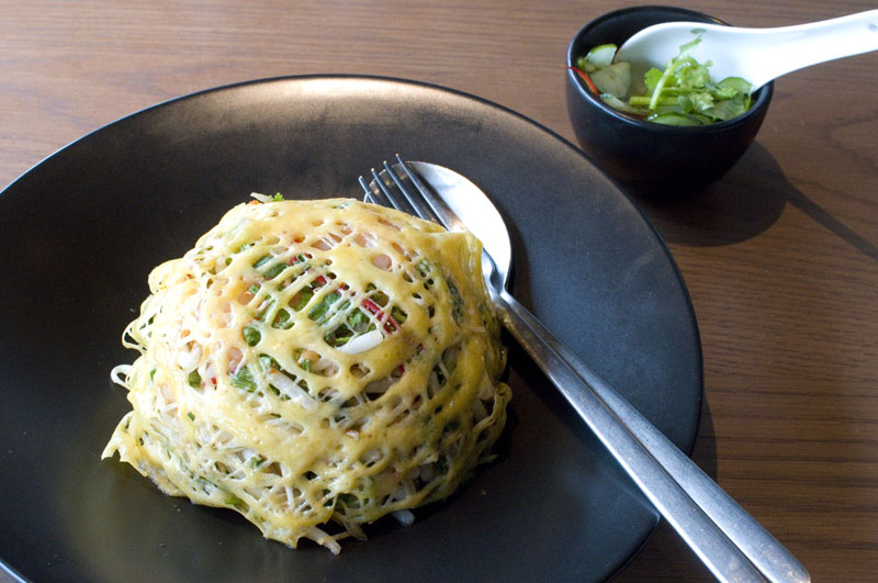 The somewhat flashy decor, the lively atmosphere and the 39th-floor view are perhaps the main reasons to visit, and indeed there seemed to be several celebratory parties during our weekend lunchtime visit. We opted for a five-course prix-fixe lunch, which came to Y3500 with supplementary charges and included both the Eggnet and the Crying Tiger, along with Pad Thai and ice cream.
