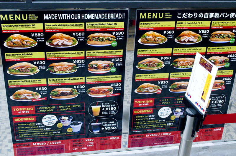 It's the assertively flavored Vietnamese condiments and crunchy pickles, though, that give these sandwiches their distinctive banh mi identity, and these are just perfect. There are nine different sandwiches in all, ranging in price from Y580-630, along with a couple of side dishes (spring rolls and papaya salad), a few desserts, and Vietnamese coffee.