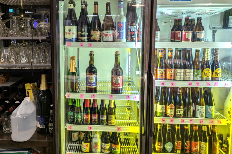 Half a dozen taps here serve brews from Belgium's Haacht Brewery as well as one or two guest beers. There's also a respectable bottled selection with well-known names like Westmalle, Rochefort, Leffe and Kwak - around 40 types to choose from, including large bottles.