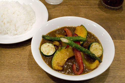 Vegetable-centered Japanese-style curry rice is the specialty at this highly rated counter shop. The four varieties on offer are onion (with chicken or shrimp), lamb with onion, chickpea keema, and the house-special multi-vegetable curry. You can also opt for extra vegetable toppings like zucchini, eggplant, asparagus and maitake mushrooms.