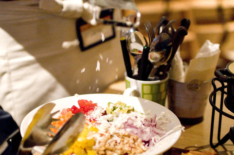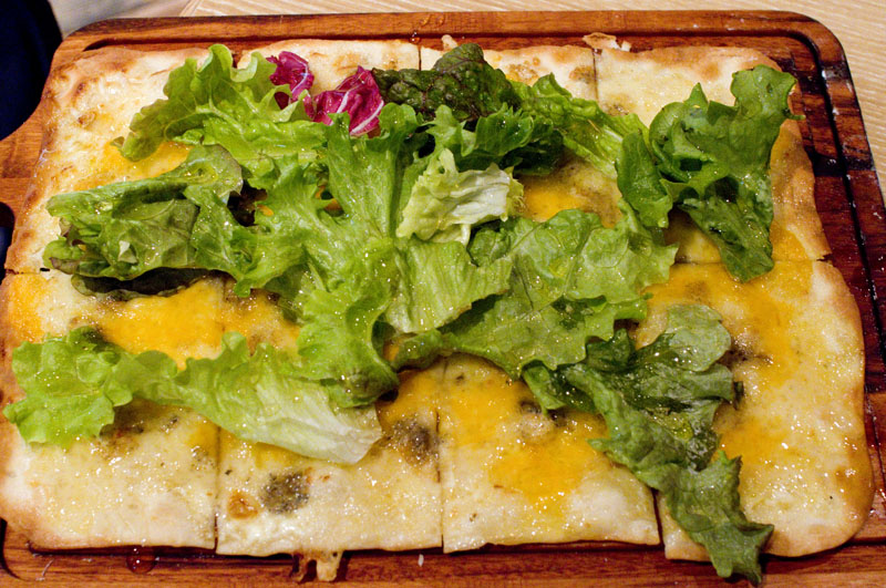 We were impressed by the non-stop table service here - waiters dab honey onto your tarte flambee, dispense copious amounts of melted raclette cheese over your vegetables, and launch cascading waterfalls of grated blue cheese over your salad. All this personal tableside attention adds a slightly luxurious, indulgent touch to a meal here.