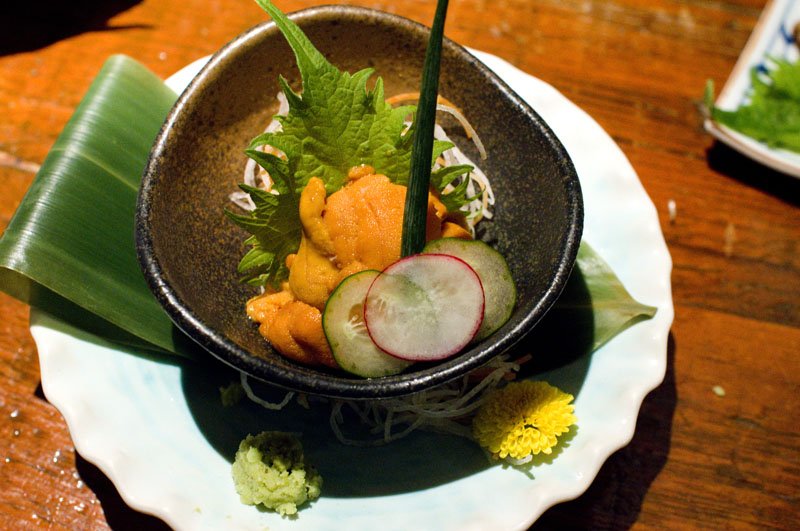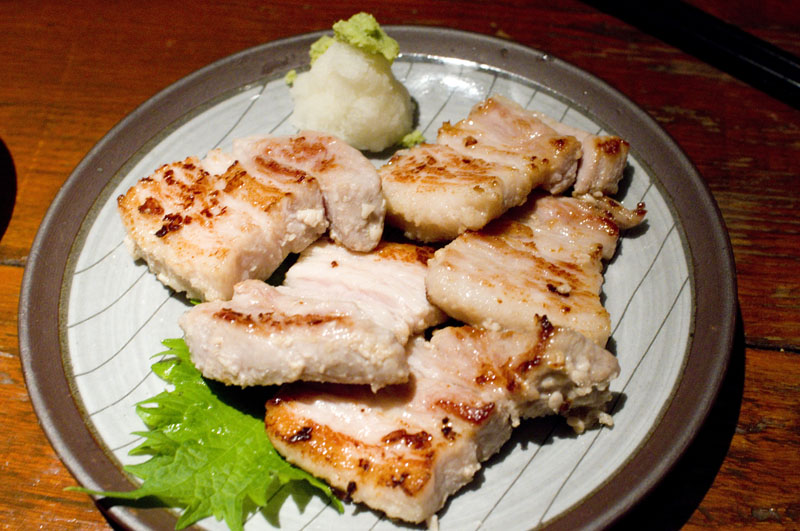 The sashimi platter of the day is, as always, an easy place to start your meal, and you can also your sashimi a la carte. We had some nice sea urchin and some excellent chicken sashimi, both of which match up well with a wide range of sake.