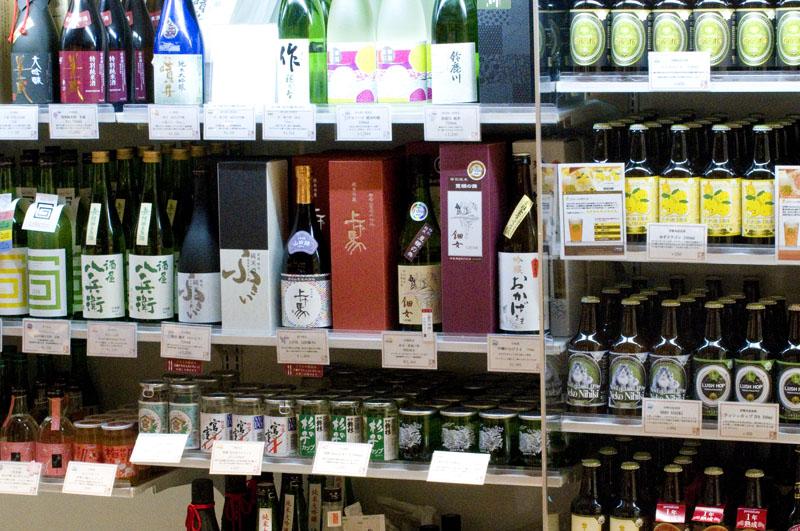 The drinks refrigerator stocks around twenty different sake, including small one-cup sizes, and more than a dozen beers by the bottle from the Ise Kadoya brewery (Y450-864 per bottle). The handicrafts section features wooden sake cups and other crafts made from cypress and cedar wood, as well as pottery and stoneware.