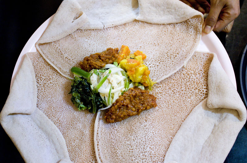 Located in a residential neighborhood in Katsushika-ku that's home base for a small Ethiopian community, Little Ethiopia offers a handful of home-style Ethiopian vegetable and bean stews and beef dishes, all served on spongy injera bread. Most main dishes are priced at around Y1000. The nearest station is Yotsugi, five minutes by train from Tokyo Skytree.