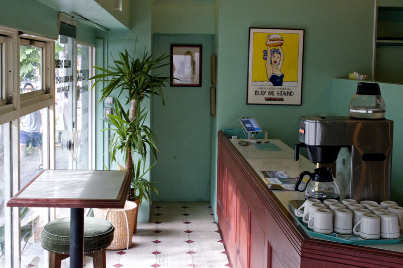 The tiny six-seat shop is fashioned after an urban American breakfast diner, with linoleum counter tops and scuffed tile floors, and a view of passing foot traffic on Namiki Bridge. Sandwiches start at Y700 at lunchtime and Y1000 the rest of the day, and of course take-out is available.