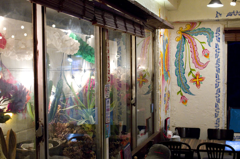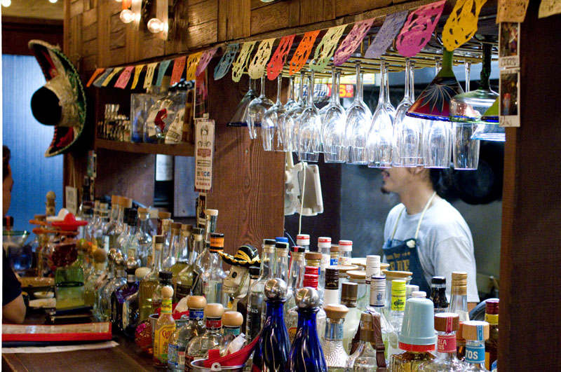 The dining room is small and cozy, with a bit of counter seating if you come on your own, and the decor is festive but not overly kitschy. Not surprisingly the Latin-music soundtrack, put together by DJ Sarasa herself, is first-rate. Budget around Y3000-4000 for food and drink.