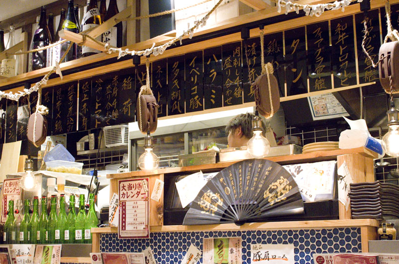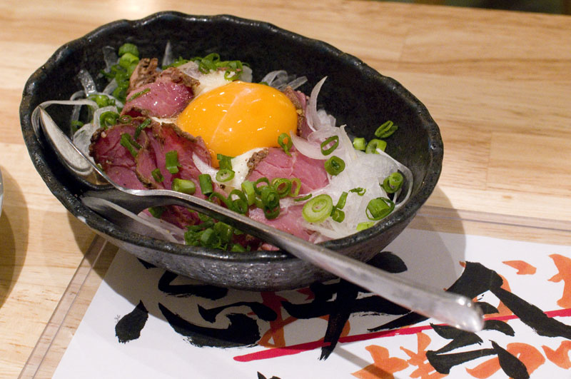 Nikuzushi's signature torisashi platter is particularly recommended - very thinly sliced, fatty cuts of beef short ribs, seared with a blowtorch at your table and seasoned with salt and pepper. English-language menus are available. Budget around Y2500 for food and drink at dinnertime.