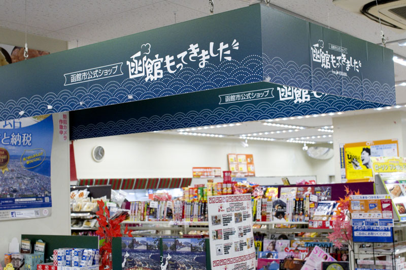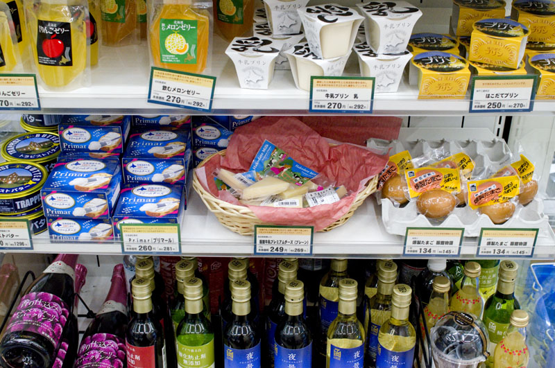 Although it's just one aisle of a Lawson convenience store rather than a full-fledged store, this mini-antenna shop from Hakodate, Hokkaido, has the advantage of being open 24 hours a day. They carry a decent variety of local specialties like wine, instant ramen, curry pouches, squid-flavored snacks, caramel candies, artisanal butter and some odd-looking soft drinks.