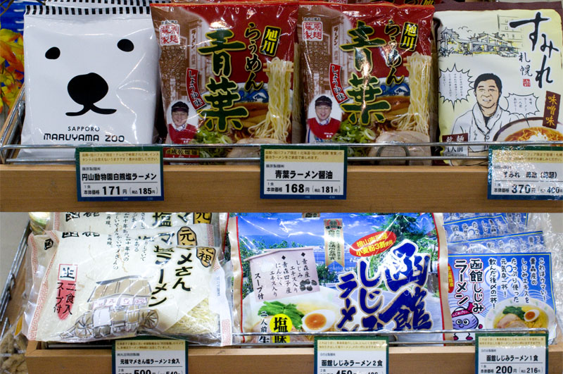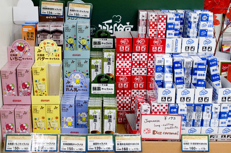Over in the freezer compartment you'll find more than twenty varieties of local ice creams in exotic flavors like marscapone, hojicha, espresso and sake. There are racks filled with tourist pamphlets at the back of the aisle, in case you feel compelled to visit Hakodate after tasting its local snacks.